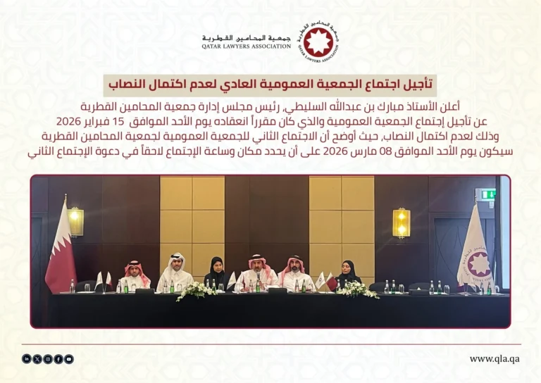 تعرب جمعية المحامين القطرية عن إدانتها واستنكارها الشديدين للاعتداء الغاشم الذي استهدف سيادة الدولة وأمنها واستقرارها، في انتهاك صارخ لمبادئ القانون والأعراف الدولية التي تكفل احترام سيادة الدول وعدم المساس بأمنها وسلامة أراضيها.