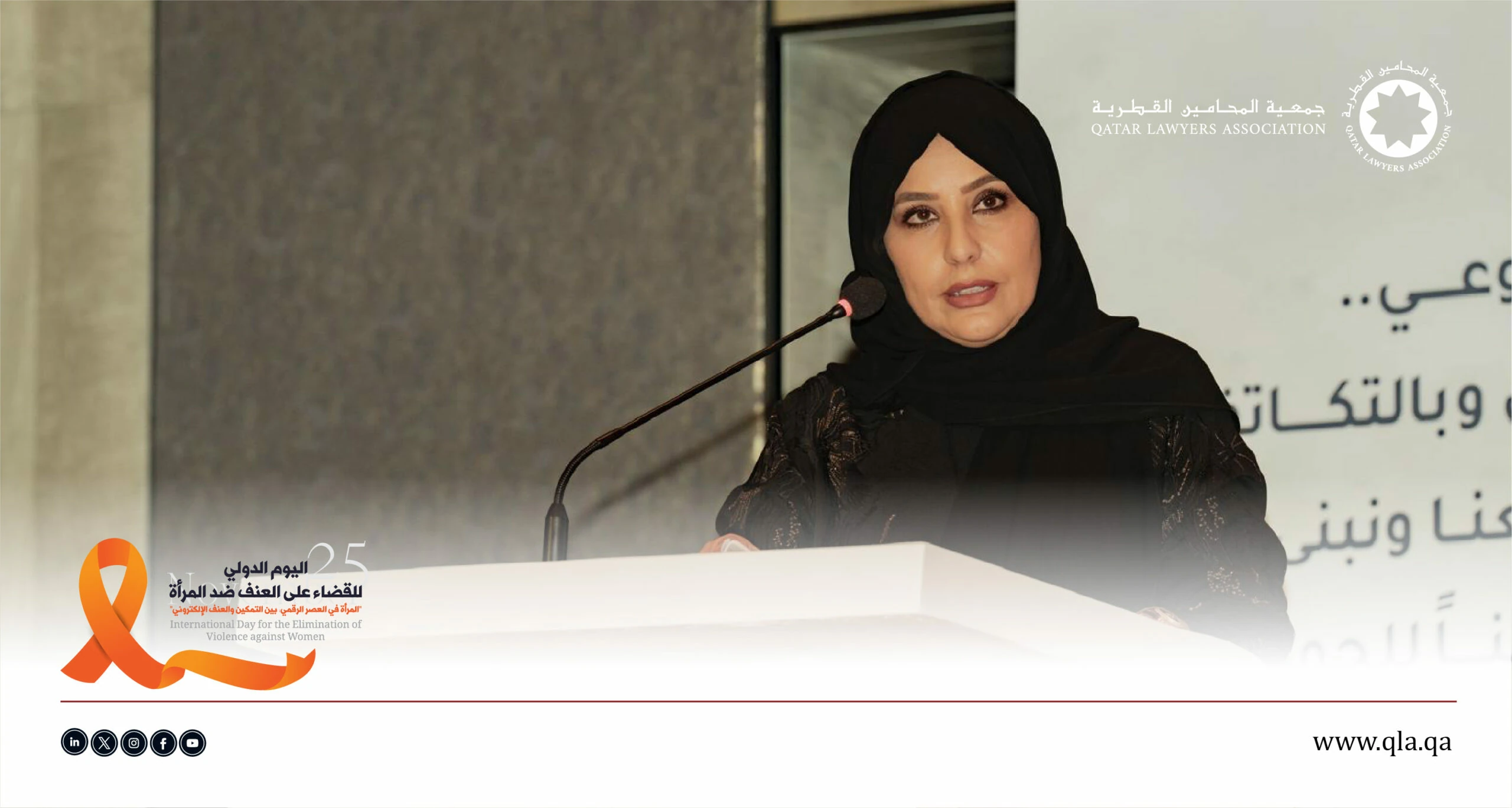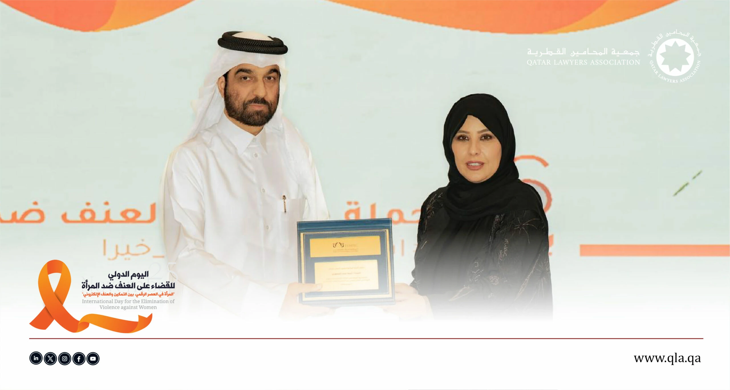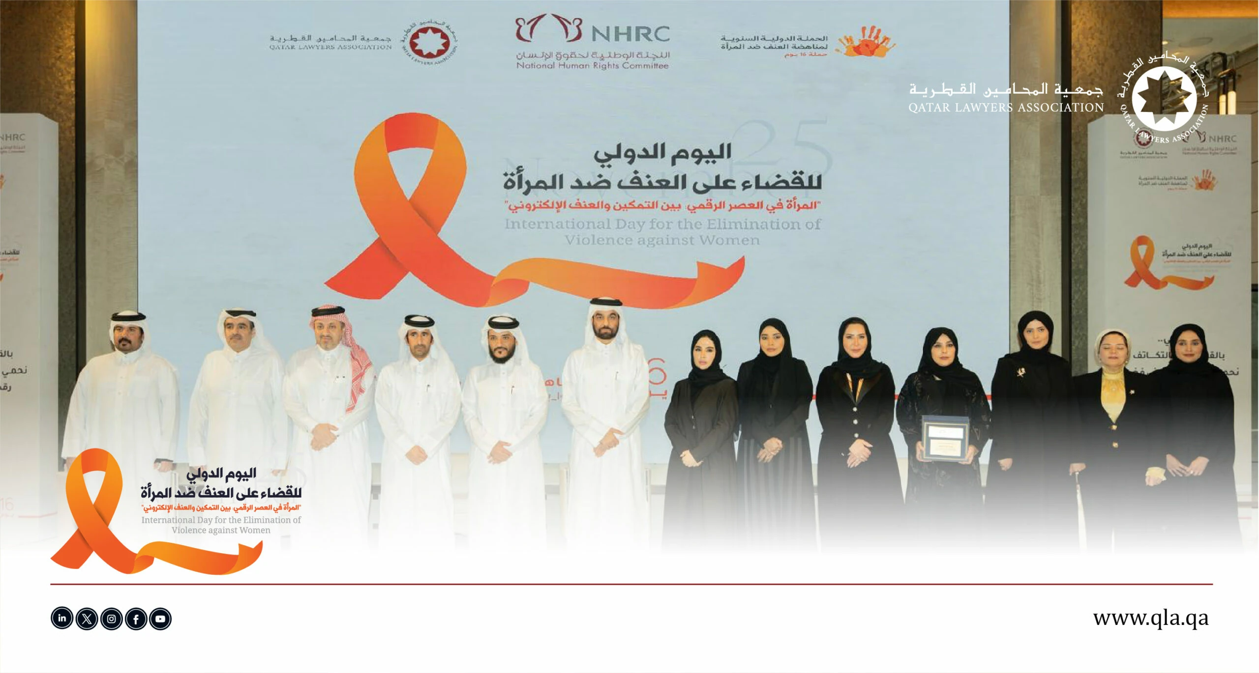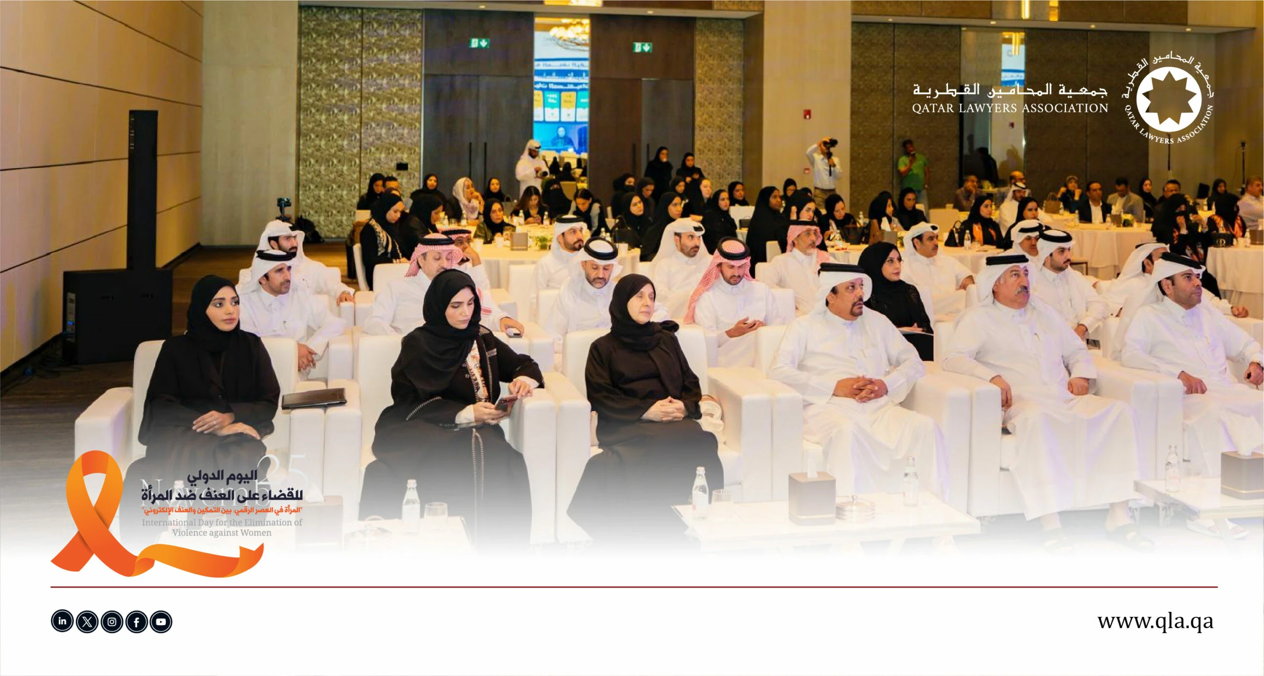 ضمن الجهود القانونية والتوعوية الرامية إلى مكافحة العنف ضد المرأة، وبمناسبة اليوم الدولي للقضاء على العنف ضد المرأة، نظّمت جمعية المحامين القطرية بالتعاون مع اللجنة الوطنية لحقوق الإنسان ندوة بعنوان: