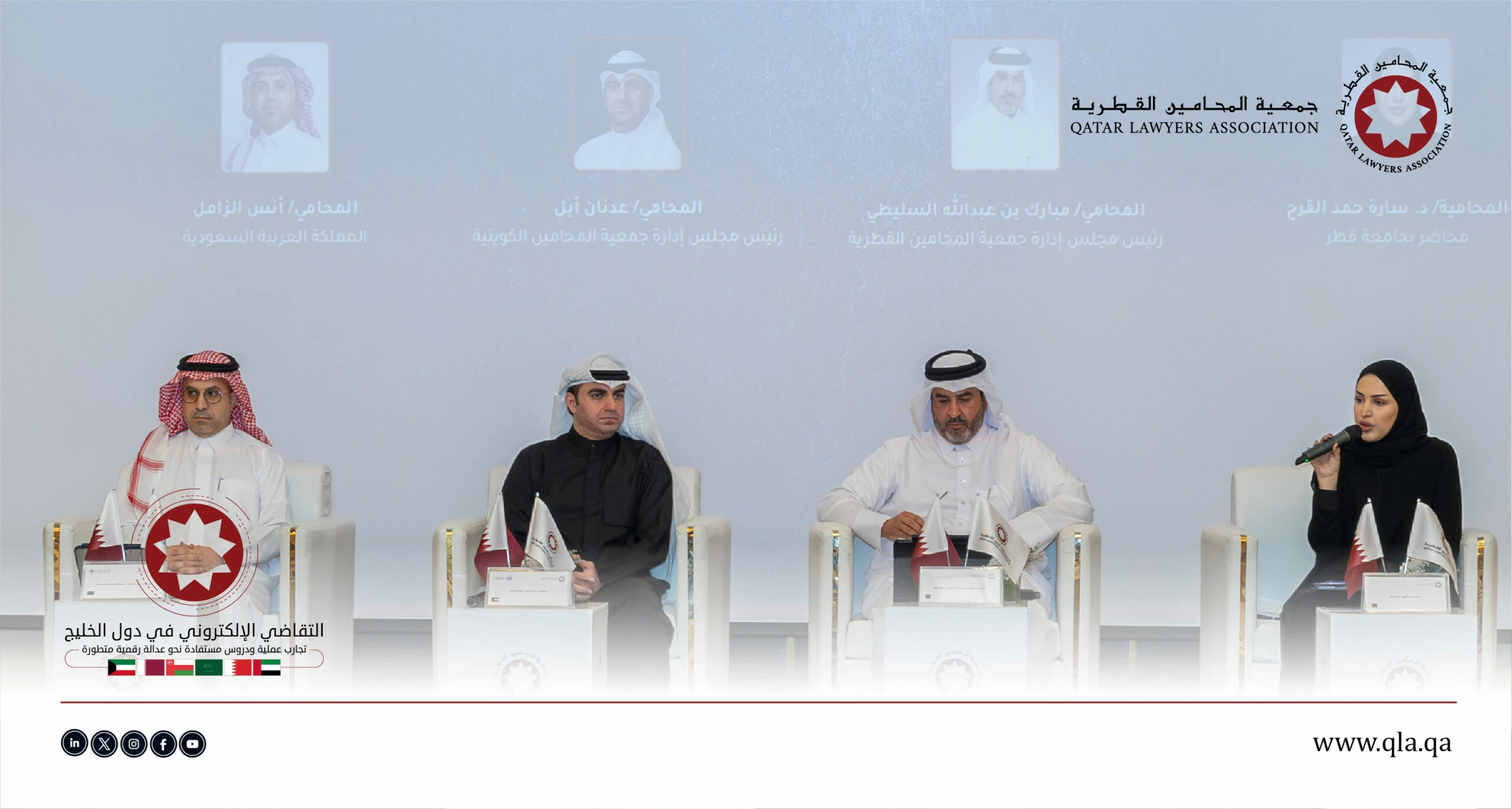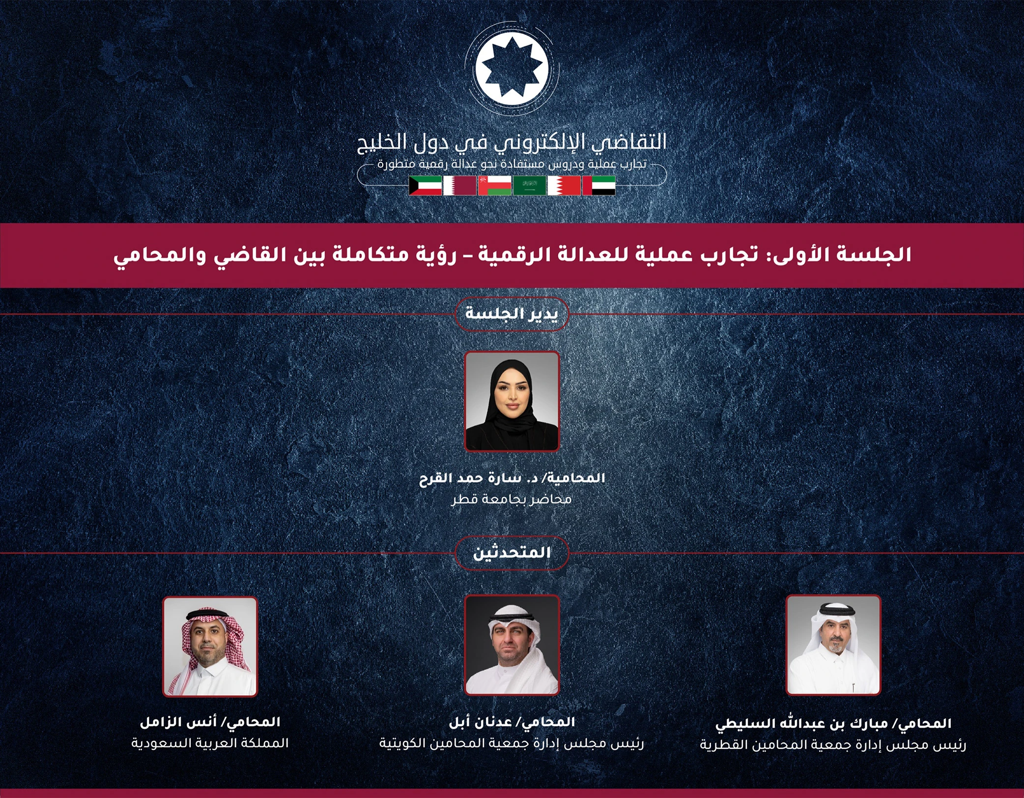 في إطار دعم التحول الرقمي للعدالة وتعزيز تبادل الخبرات القانونية في المنطقة، نظّمت جمعية المحامين القطرية يوم الثلاثاء 16 ديسمبر 2025، في تمام الساعة 10:00 صباحًا، بفندق سانت ريجس مرسى عربية – اللؤلؤة، ندوة قانونية بعنوان: