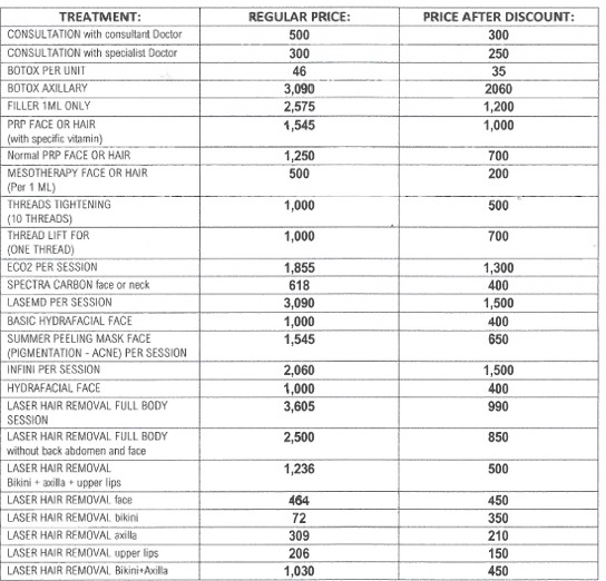 خصومات تصل إلى 60% على علاجات مختارة، وخصومات حتى 25% على باقي الخدمات.